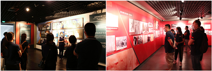 黨員們?cè)谝环鶜v史畫(huà)卷以及戰(zhàn)俘曾經(jīng)使用過(guò)的物品前駐足停留,大量珍貴的影像資料、繪畫(huà)、雕塑和歷史實(shí)物見(jiàn)證了中國(guó)人民和美英等國(guó)盟軍并肩作戰(zhàn)、共同抗擊日本侵略者的跨國(guó)情誼,以及戰(zhàn)俘們?cè)诮^境中保有的不屈不撓的樂(lè)觀(guān)精神和頑強(qiáng)的斗爭(zhēng)精神,為黨員們上了一堂生動(dòng)的歷史教育課。